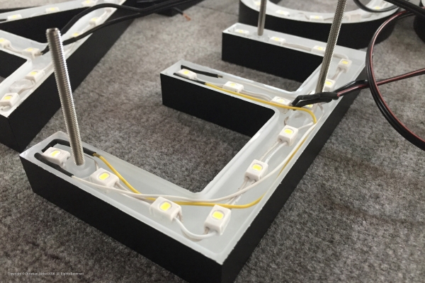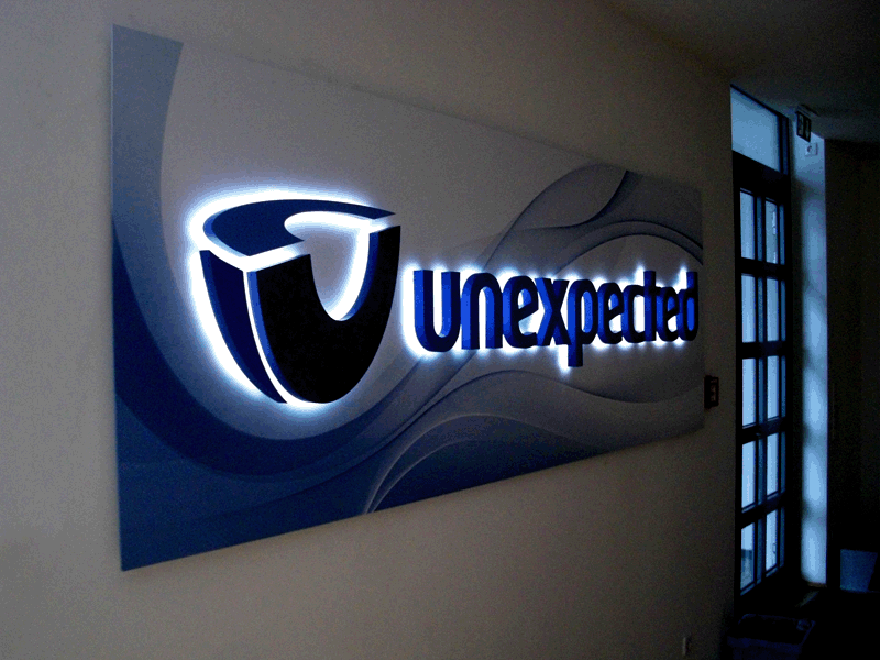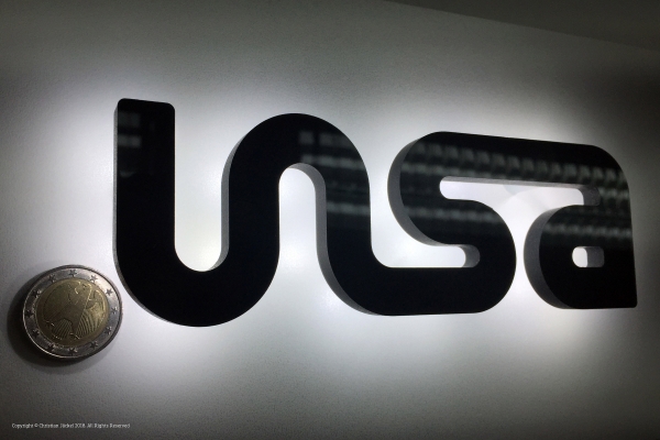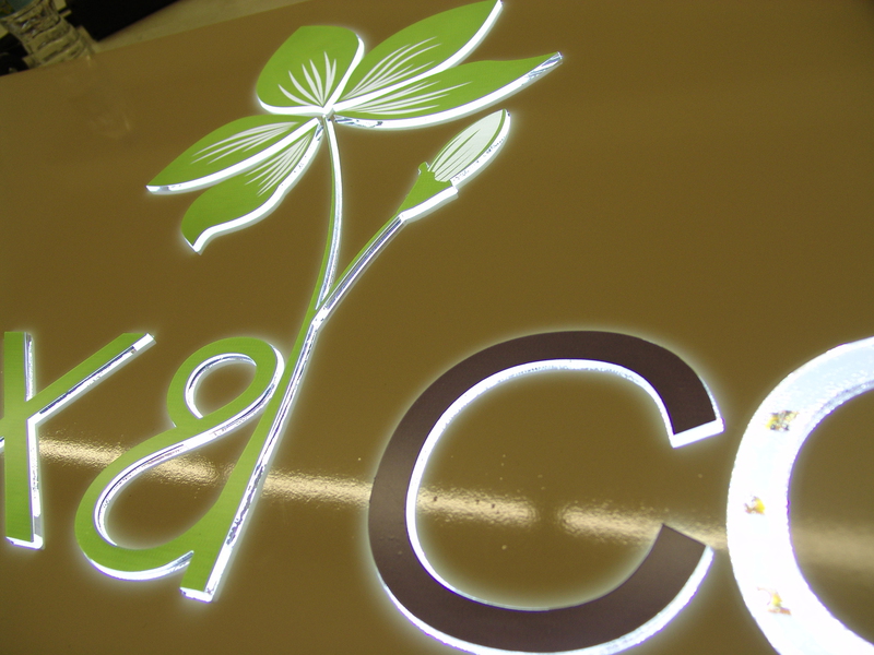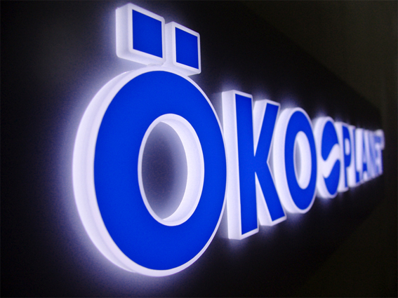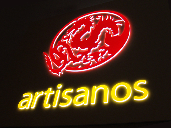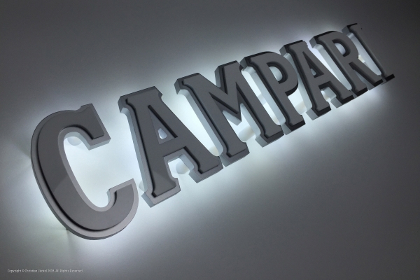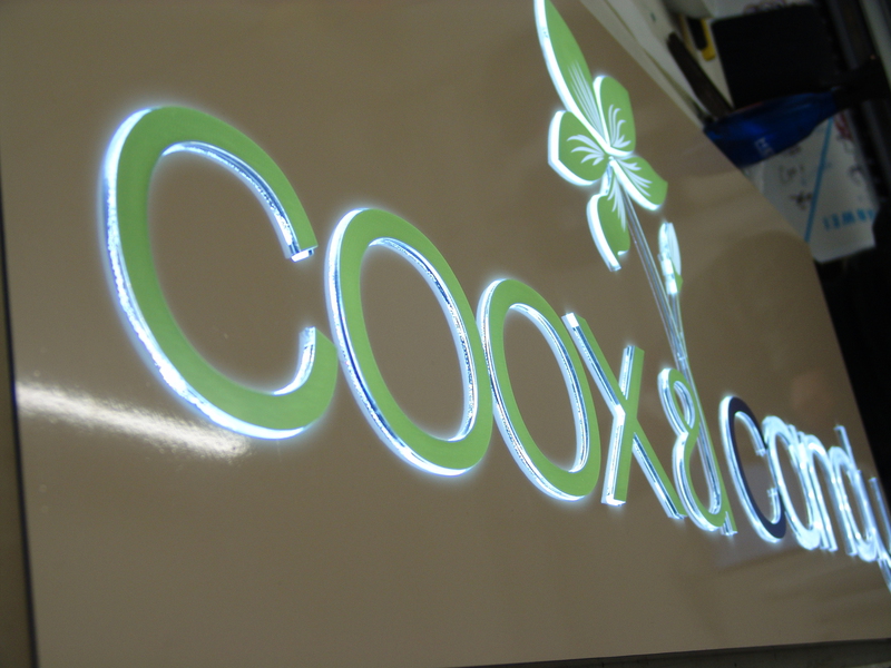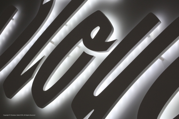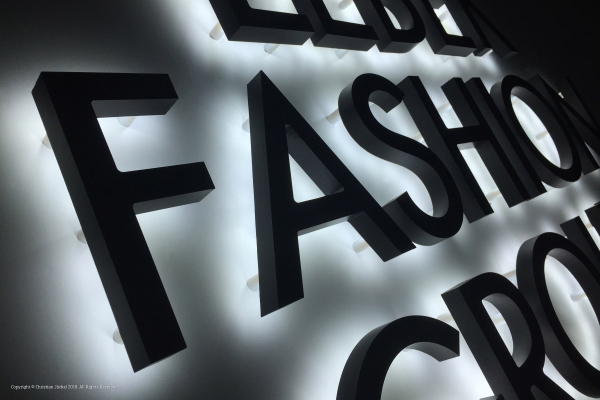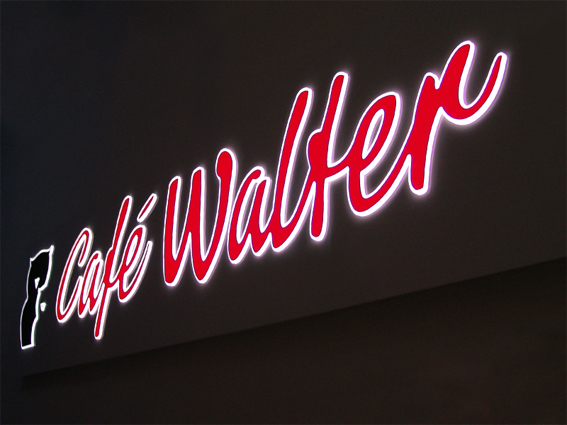 Leuchtkästen mit dekupierten- und durchgesteckten Buchstaben oder Leuchtkästen mit aufgesetzten, rückleuchtenden Buchstaben.